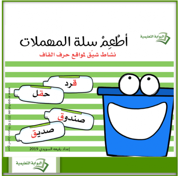 نشاط شيّق لتعلم مواقع حرف القاف، في أول الكلمة، وسط الكلمة، آخر الكلمة متصلة، آخر الكلمة منفصلة. الهدف من هذا النشاط: أن يتمكن الطالب من تحديد موقع الحرف عن طريق اختيار البطاقة الصحيحة.