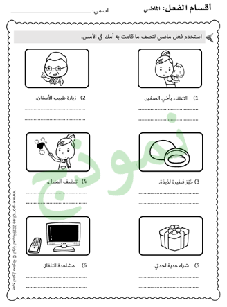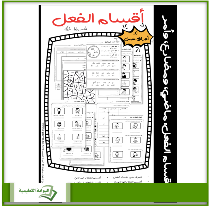 أوراق عمل في درس أقسام الفعل :الماضي، والمضارع، والأمر. تتكون هذه الحزمة من 10 أوراق عمل غير ملوّنة. تتنوع الأسئلة كالآتي: