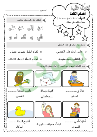 - أقسام الكلمة: صل وابحث (الحرف، والاسم)