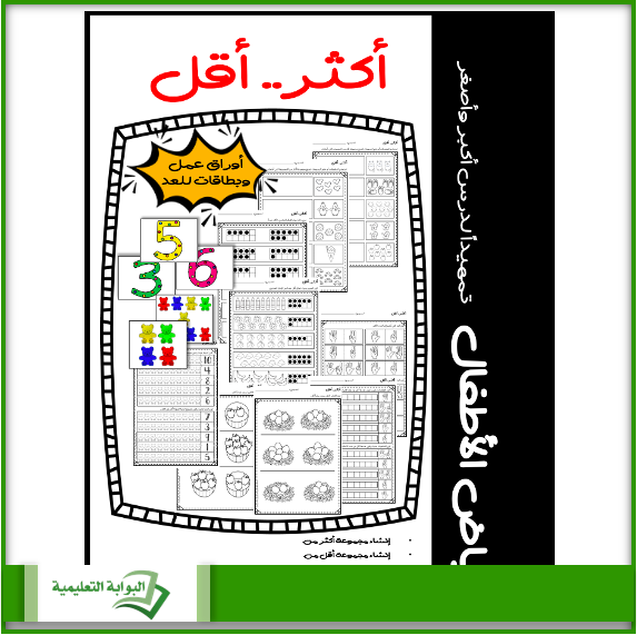 سيجد طفل الروضة صعوبة في تعلم وفهم إشارتي أكبر وأصغر عند البدء بتعلم هذين المفهومين، لذا يبدأ المعلم بتعليم الطفل مفهومي أكثر وأقل بدون استخدام إشارتي أكبر وأصغر، هذه المجموعة ستتيح للطالب بتعلم: