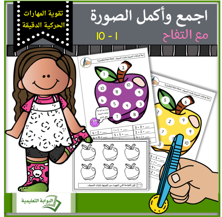 سيستمتع طلابك في تعلم الجمع باستخدام الملقط وكرات الصوف لإكمال الصورة. ما عليك سوى طباعة النشاط وتغليفه حرارياً وتوفير ملقط وعدد كاف من كرات صوف مختلفة الألوان بحيث يطابق الطالب كرة الصوف مع لون الصورة لتكملة الفراغات.