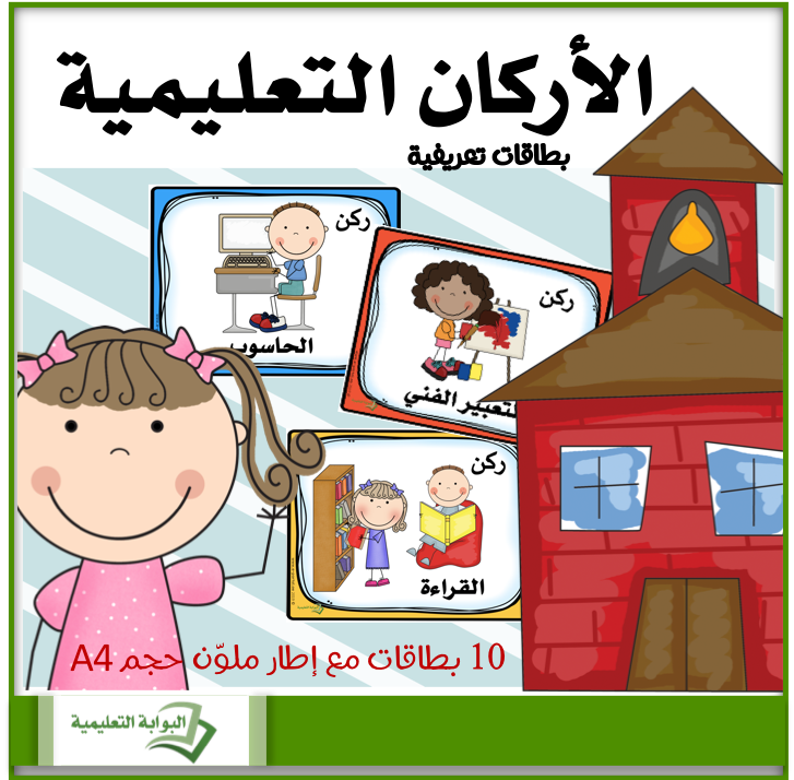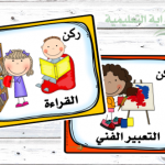 بطاقات تعريفية للأركان التعليمية في غرفة التعلم. تستخدمها المعلمة لتعريف الطلاب بالركن ولتزيين الأركان. يتكون الملف من 10 بطاقات بحجم الطول51.12 cm ، العرض 49.99 cm ،وهي كالآتي: