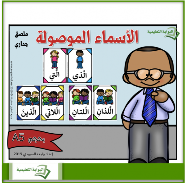 ملصقات جدارية للأسماء الموصولة بحجم ورقة A5. يستخدمها المعلم لتعليقها في غرفة التعلم لأهداف تعليمية مختلفة، منها: التعرّف عليها ولِمن تستخدم، و كمرجع للطالب أثناء ممارسة الأنشطة، ولتزيين قسم اللغة العربية. ما عليك سوى طباعتها وتغليفها حرارياً لتدوم طويلاً.