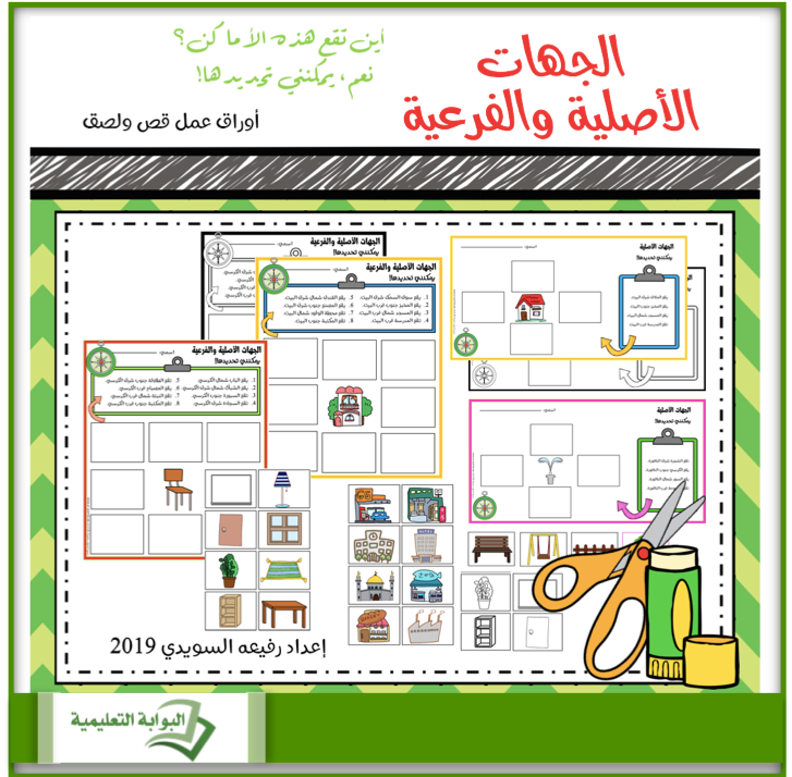 الجهات الأصلية والفرعية أوراق عمل قص ولصق، إنها طريقة ممتعة لتعلم الجهات، حتماً سيستمتع طلابك بممارسة هذا النشاط الشيّق. يضم هذا الملف: