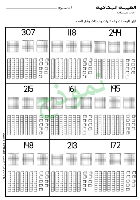 - القيمة المكانية: أوراق عمل “آحاد، عشرات”