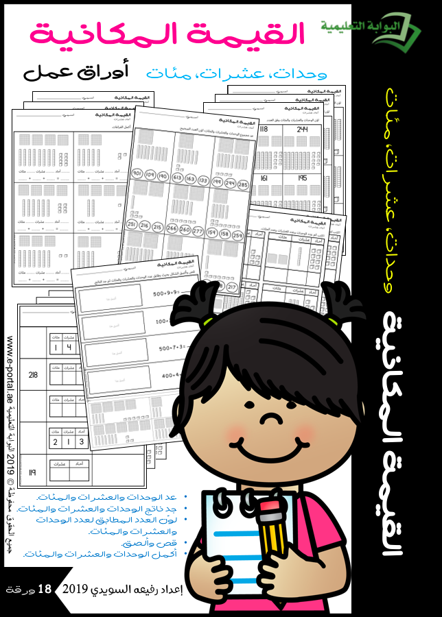 أوراق عمل ممتعة ومختلفة في القيمة المكانية للآحاد والعشرات والمئات. تضم هذه الحزمة من 18 ورقة عمل وتتميز بتنوع الأسئلة، وهي: