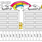 - ال الشمسية وال القمرية: بطاقات تصنيف اللام على اللوح مع ورقة عمل