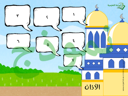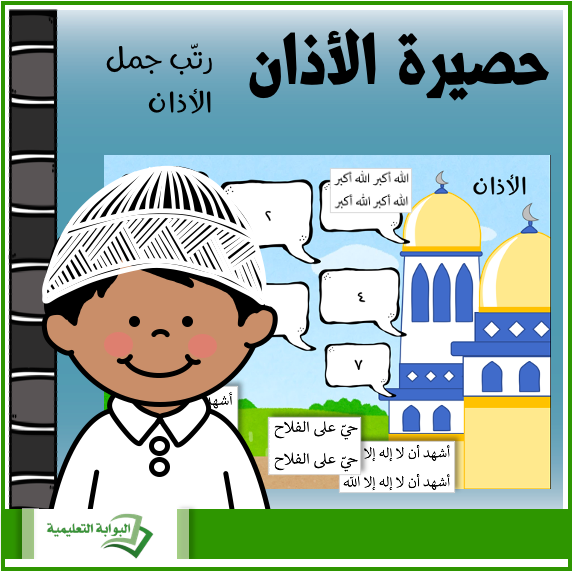 حصيرة الأذان، لعبة تعليمية ممتعة الهدف منها أن يتمكن الطالب من ترتيب جُمل الأذان بالشكل الصحيح. الملف يضم حصيرة واحدة ملوّنة بحجم ورقة A4 وجُمل الأذان وعددها 7. اطبع الحصيرة مع البطاقات وغلفها حرارياً، ثم قص بطاقات جُمل الأذان وضعها في ظرف صغير. يمكن ممارسة هذا النشاط فردي أو جماعي. سيستمتع طلابك حتماً أثناء ممارسة هذا النشاط.