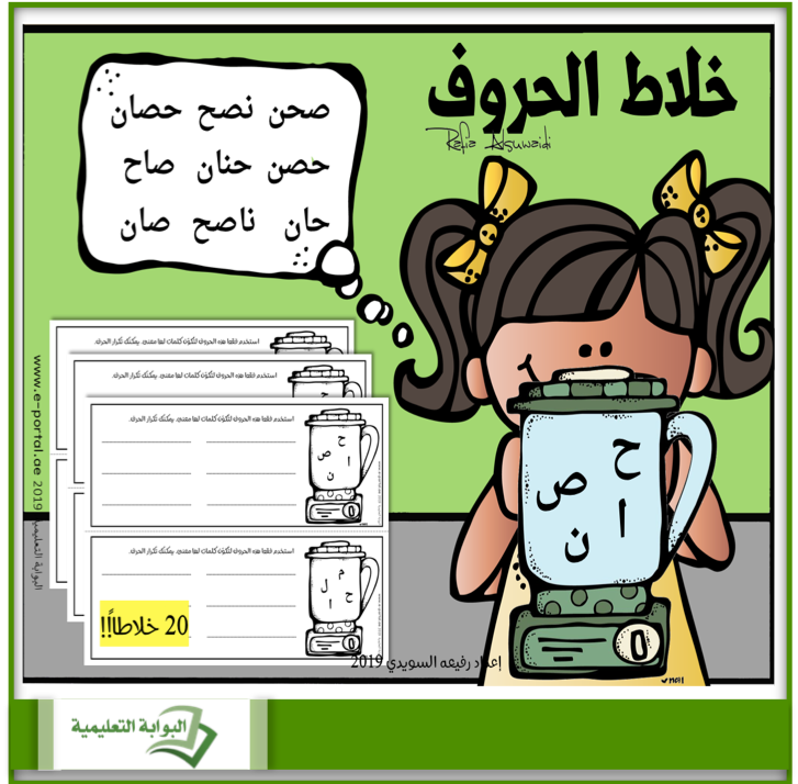 نشاط رائع لتعلم تكوين كلمات ذات معنى. النشاط مكوّن من 20 خلاطاً يضم أربعة حروف مختلفة وعلى الطالب أن يكون من هذه الحروف ستة كلمات على الأقل، قد يتمكن بعض الطلاب من تكوين أكثر من ستة كلمات، وأيضاً سيتمكن البعض من كتابة كلمات متشابهة في الحروف ولكنها مختلفة في التشكيل والمعنى، مثل: (عالَم/ عالِم، عَلَمٌ/ عِلْمٌ، سَحَبَ/ سُحُبٌ، …إلخ.