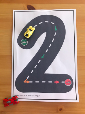 الهدف من هذا النشاط هو أن يتعرّف الطالب على شكل العدد من خلال تمرير السيارة عليه.