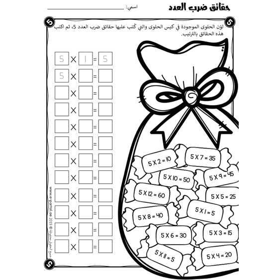 ضرب العدد خمسة: أوراق عمل