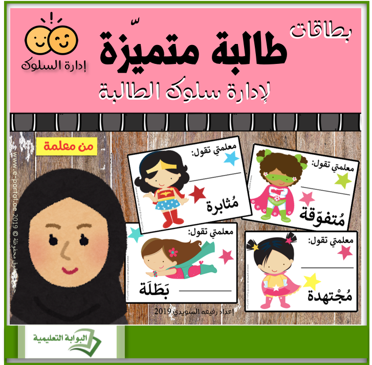 – بطاقات طالبة متميّزة (للبنات) من معلم.