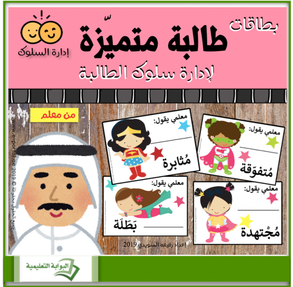 – بطاقات طالبة متميّزة (للبنات) من معلم.