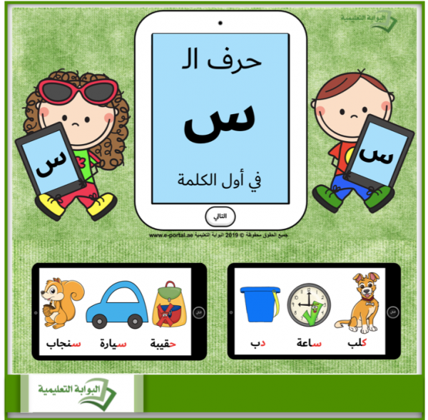 عرض تقديمي مميّز لحرف السين في أول الكلمة، يمكن للمعلم عرضه في بداية الدرس كتمهيد أو في نهاية الدرس كمراجعة للطلاب.