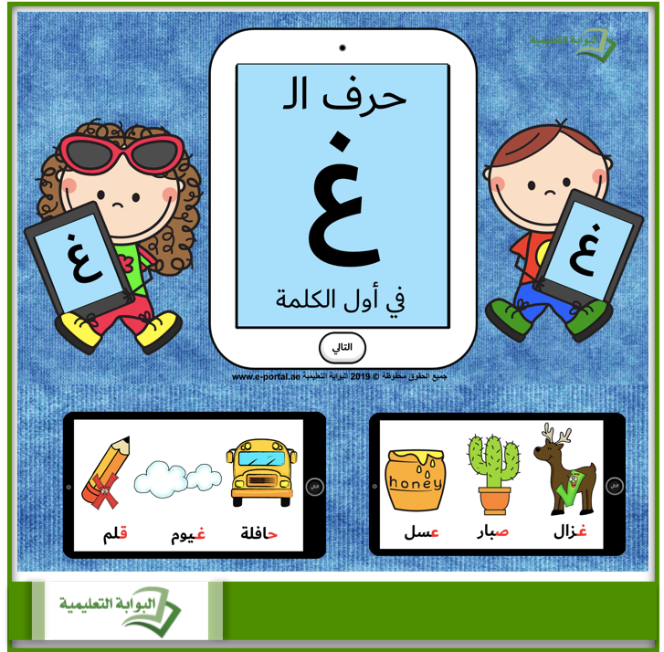 عرض تقديمي مميّز لحرف الغين في أول الكلمة، يمكن للمعلم عرضه في بداية الدرس كتمهيد أو في نهاية الدرس كمراجعة للطلاب.
