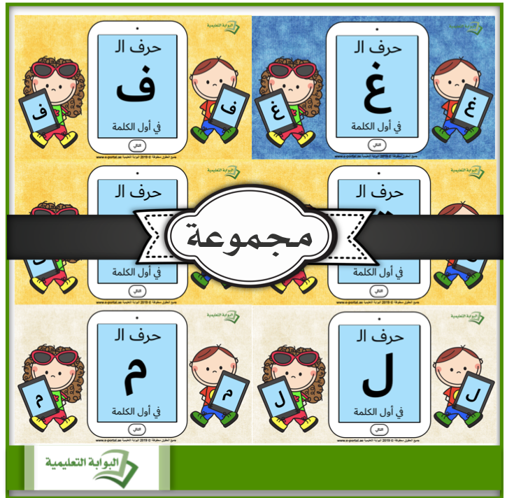 عروض مميّزة للحروف غ، ف، ق، ك، ل، م في أول الكلمة، يمكن للمعلم عرضه في بداية الدرس كتمهيد أو في نهاية الدرس كمراجعة للطلاب.