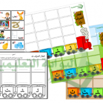يضع الطالب البطاقة على حصيرة القطار في مكانها الصحيح وفق موقع الحرف المكتوب على القطار.