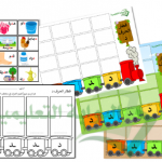 يضع الطالب البطاقة على حصيرة القطار في مكانها الصحيح وفق موقع الحرف المكتوب على القطار.
