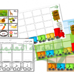 يضع الطالب البطاقة على حصيرة القطار في مكانها الصحيح وفق موقع الحرف المكتوب على القطار.