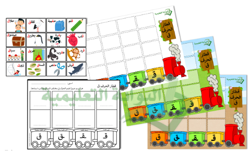 يضع الطالب البطاقة على حصيرة القطار في مكانها الصحيح وفق موقع الحرف المكتوب على القطار.