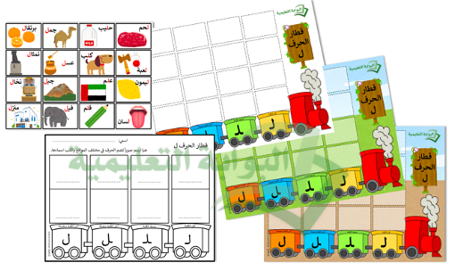 يضع الطالب البطاقة على حصيرة القطار في مكانها الصحيح وفق موقع الحرف المكتوب على القطار.