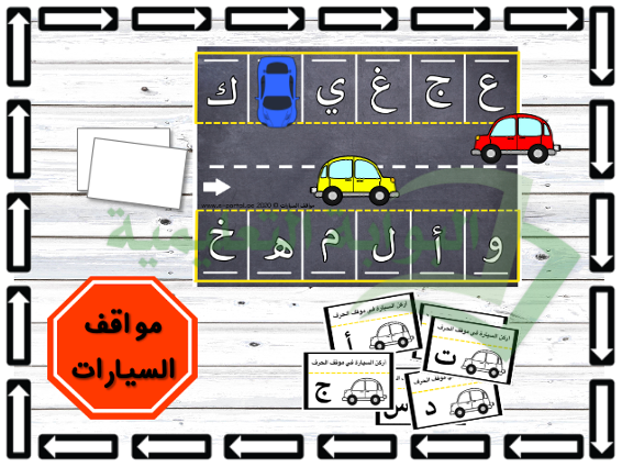 نشاط رائع ومفيد في تعلم حروف الهجاء لمرحلة ما قبل المدرسة وكذلك مستوى الروضة وتحديداً في ركن التصميم والبناء. يعتبر هذا النشاط مورد ممتاز لبناء مهارة التمييز البصري من خلال مطابقة الحروف مع بعضها، وكذلك تنمية المهارات الحركية الدقيقة بواسطة اللعب بالسيارات وتحريكها.