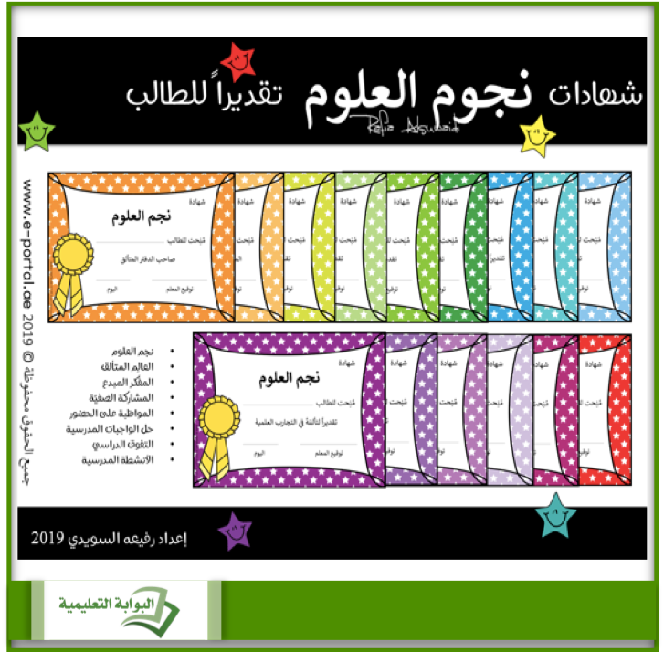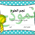 يختلف أسلوب المعلم في تقدير عمل وجهد الطالب بشتى الوسائل، منها الكوبونات والملصقات والجوائز وكذلك شهادات التقدير. نوفّر لك في هذا الملف مجموعة رائعة من شهادات التقدير وتحديداً في مادة العلوم والتي من خلالها تُعزز مواظبة الطالب على تميزه وتفوقه.