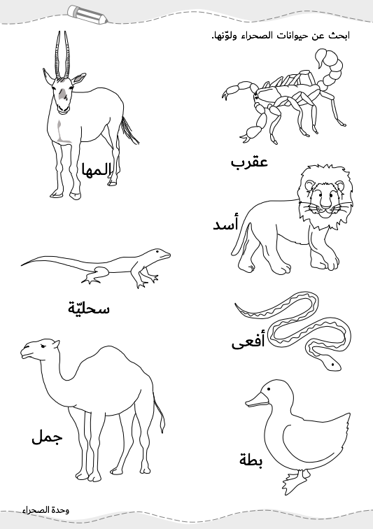 هذا الملف خاص بوحدة الصحراء يحتوي على تدريبات متنوّعة ومفيدة في 6 صفحات غير ملوّنة.