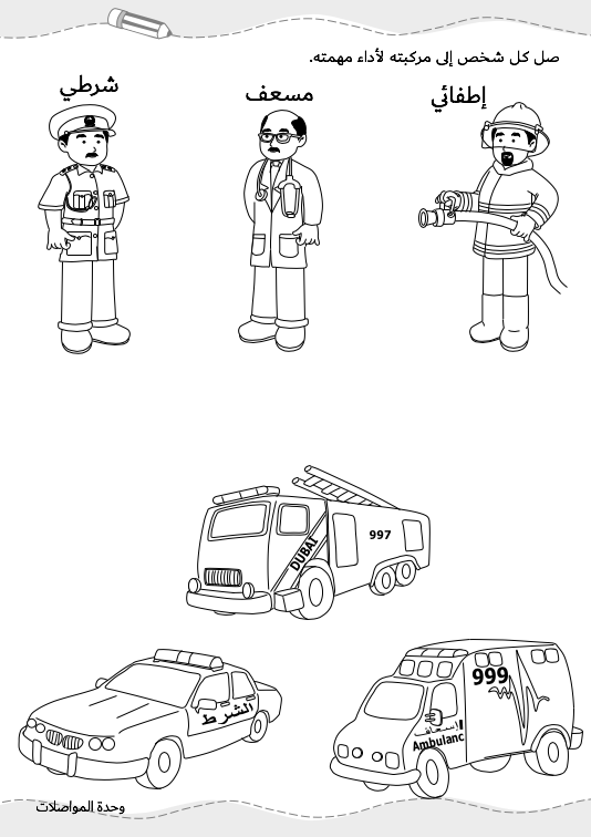هذا الملف خاص بوحدة المواصلات يحتوي على تدريبات متنوّعة ومفيدة في 6 صفحات غير ملوّنة.
