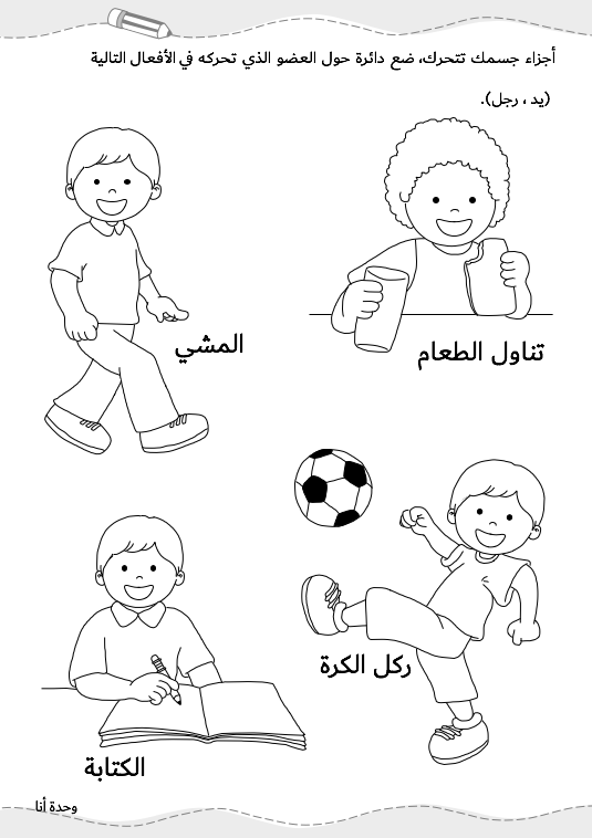 هذا الملف خاص بوحدة أنا يحتوي على تدريبات متنوّعة ومفيدة في 5 صفحات غير ملوّنة.