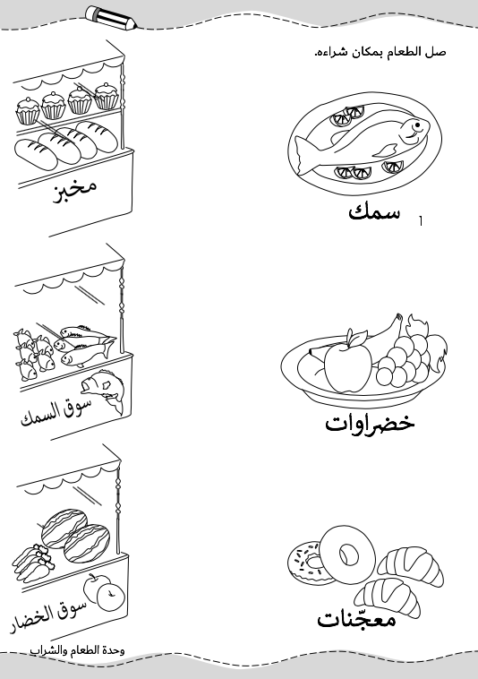 هذا الملف خاص بوحدة الطعام والشراب يحتوي على تدريبات متنوّعة ومفيدة في 5 صفحات غير ملوّنة.