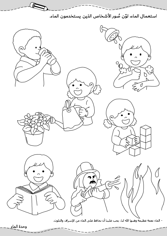 هذا الملف خاص بوحدة الماء يحتوي على تدريبات متنوّعة ومفيدة في 4 صفحات غير ملوّنة.