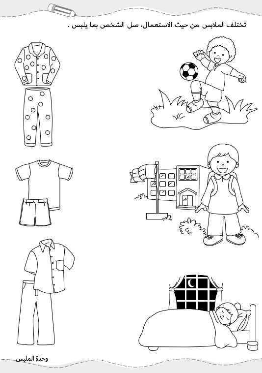 هذا الملف خاص بوحدة الملبس يحتوي على تدريبات متنوّعة ومفيدة في 7 صفحات غير ملوّنة.